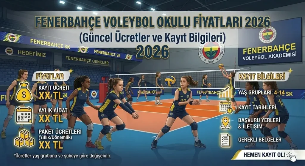 Peki 2026 yılında Fenerbahçe voleybol okulu fiyatları ne kadar? Bu yazıda ortalama kurs ücretlerini, eğitim programlarını ve kayıt süreci hakkında merak edilenleri detaylı şekilde ele alıyoruz.