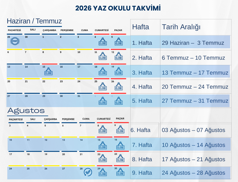 Süre: Toplam 9 Hafta (28 Ağustos’a kadar).